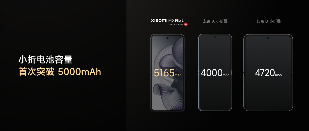 它还拥有 5165mAh 小米金沙江电池,这是小折叠电池容量第一次突破 5000mAh 大关。支持 67W 有线秒充+50W 无线秒充,告别续航焦虑。