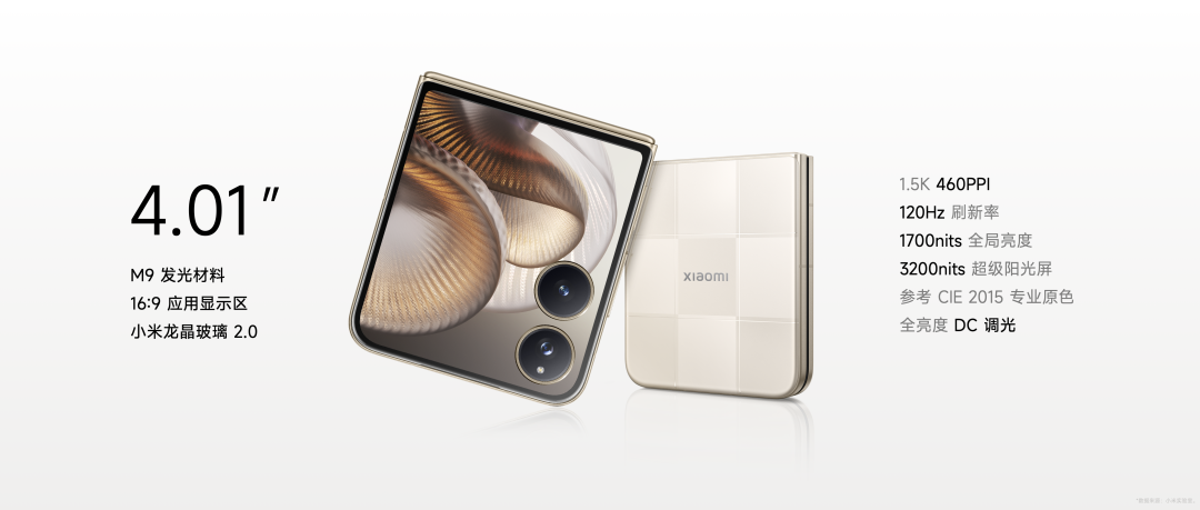 Xiaomi MIX Flip 2 的外屏可用性进一步升级,目标是打造成一部好用的小手机。它搭载一块 4.01 英寸多功能大外屏,主应用区域近似 3.5 英寸,16:9 比例,接近经典的 iPhone 4S。
